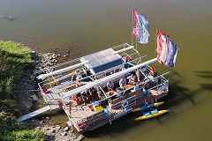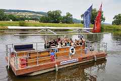 Unsere Floßtouren im Weserbergland sind etwas Besonderes, wo sonst kann man auf einer Bundeswasserstraße (Weser, drittschnellster Fluss Deutschlands) in entspannter Atmosphäre einen schönen und abwechslungsreichen Tag verbringen.